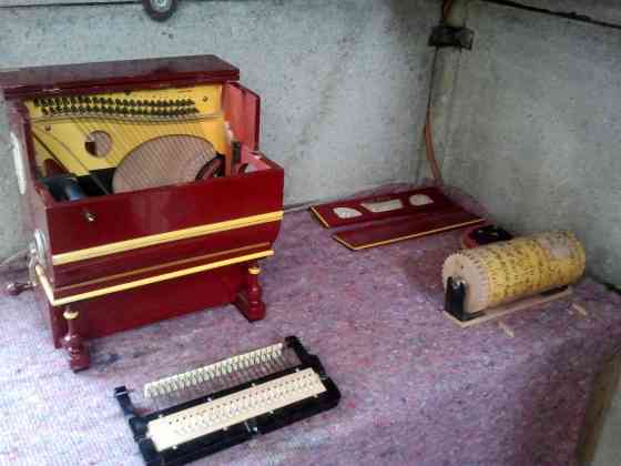 Disassembled and ready to have strings removed/replaced. This is a delightful little tabletop instrument which has 6 different tunes on it’s barrel and is hand cranked. Spain continued to make these charming instruments decades after production had stopped elsewhere in Europe.