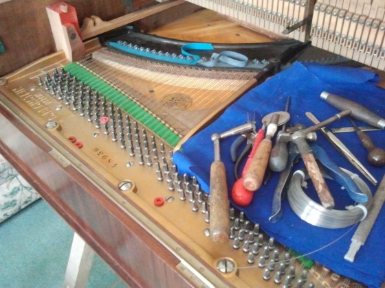 This month saw an extra restringing job added to the schedule. A couple of days out in a client’s front room with their beloved Bechstein model 10 upright over on it’s back. Due to a previous rather rough restringing of the treble section the quality of sound we expect just wasn’t there. The restringing of just the top couple of octaves ensured that the piano has a cleaner sound and can be tuned properly, a comfort to the customer and anyone who has to tune the piano in future!