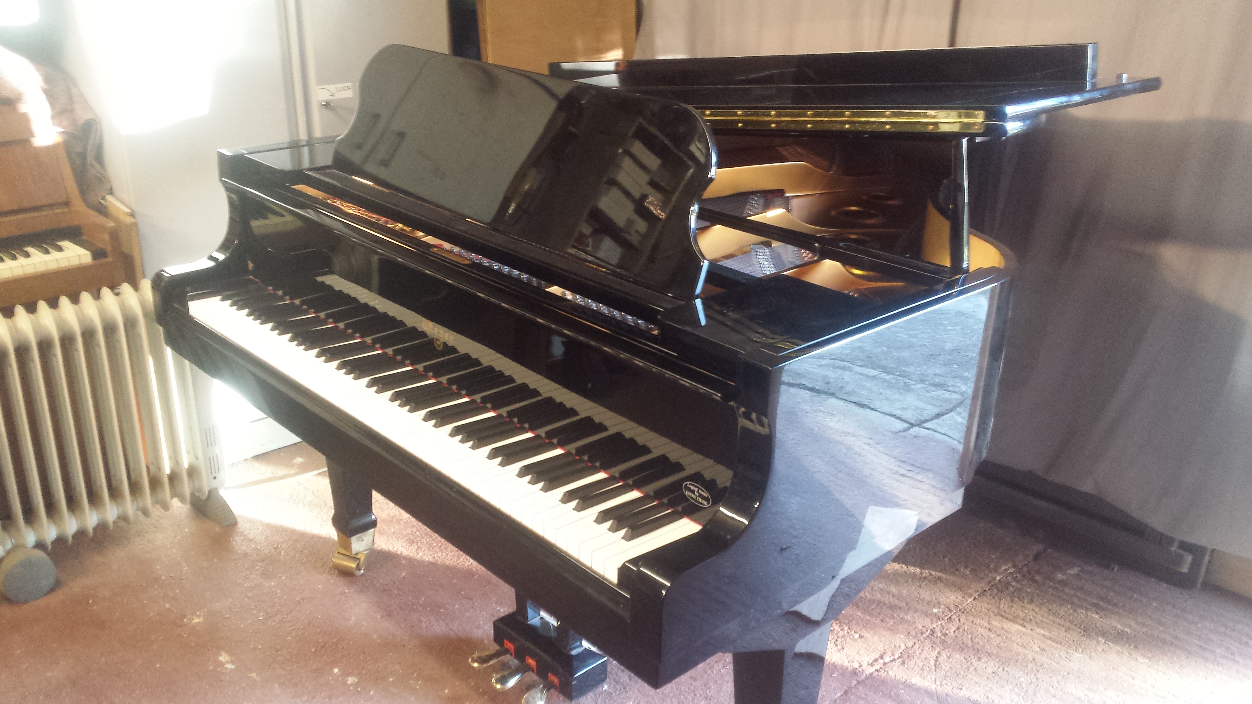 This week a new addition has been made to the stock. Pictured above is a 14 year old Weber grand. At 5’5″ the piano is best categorised as a boudoir grand. The tone is medium bright and the action is good. Having only been used as a beginner’s instrument the mechanism is barely ‘worn in’ meaning that it plays as if brand new. Available for sale now, £5500.  £2750